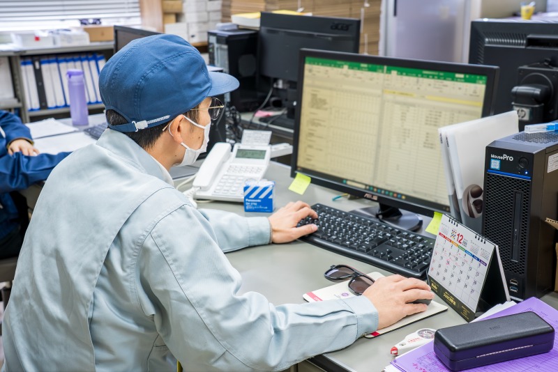 会社全体に関する事務を行い、社内全体をサポートしています。具体的には、経理や労務、人事、経営管理などがあり、幅広く業務を担当しています。